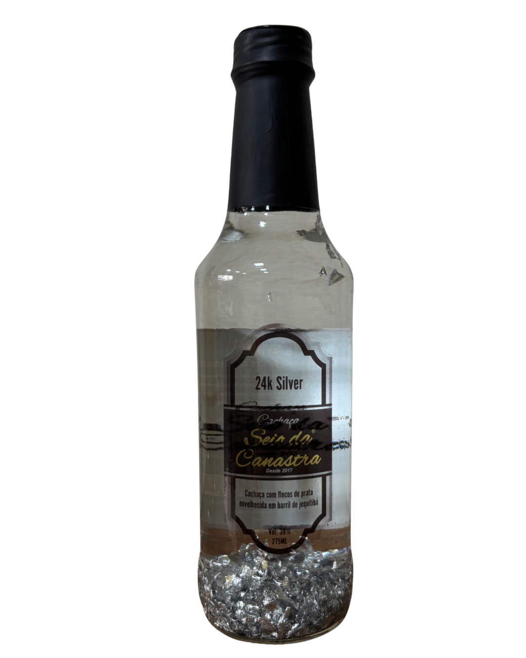 A Seio da Canastra 24K Silver é uma cachaça artesanal premium, produzida a partir do mais puro caldo de cana-de-açúcar fermentado, cuidadosamente destilada e envelhecida em barril de jequitibá, preservando suavidade, pureza e equilíbrio.